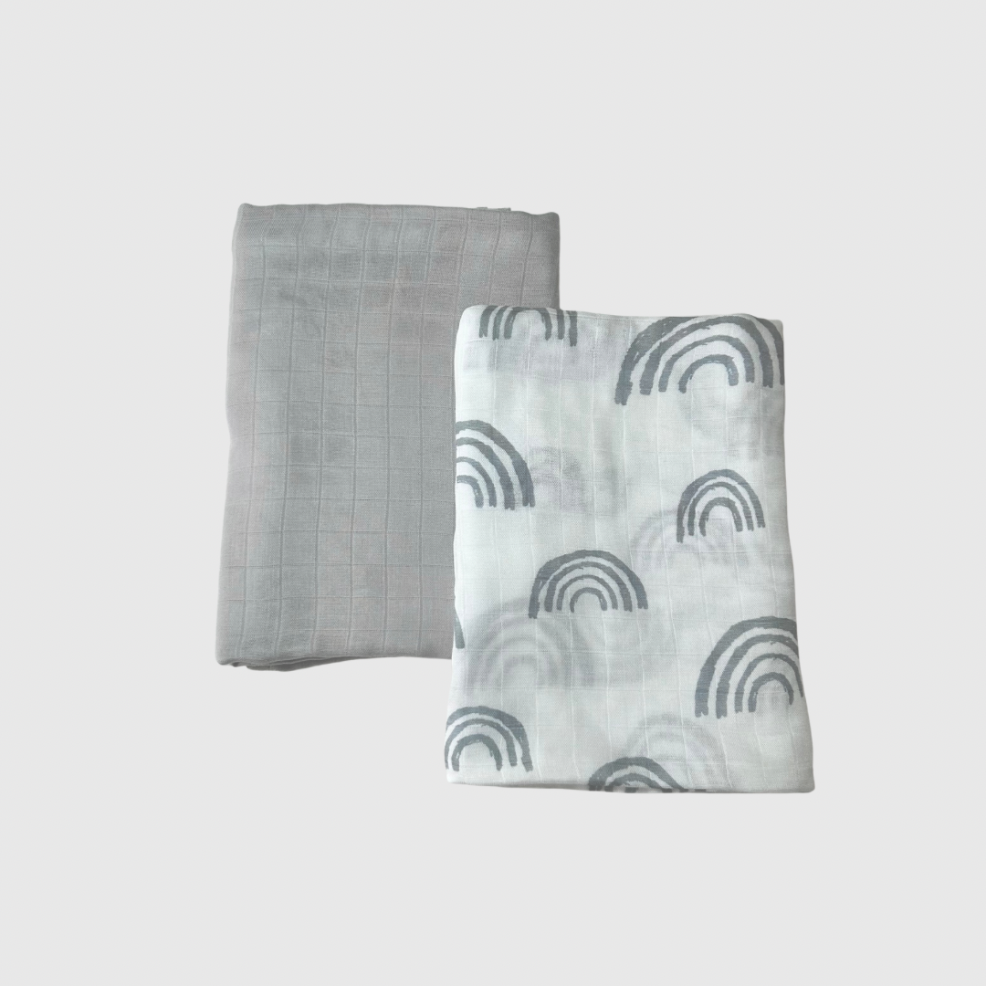 Bamboo Muslin Blanket - Pack of 2 - Grey Rainbow